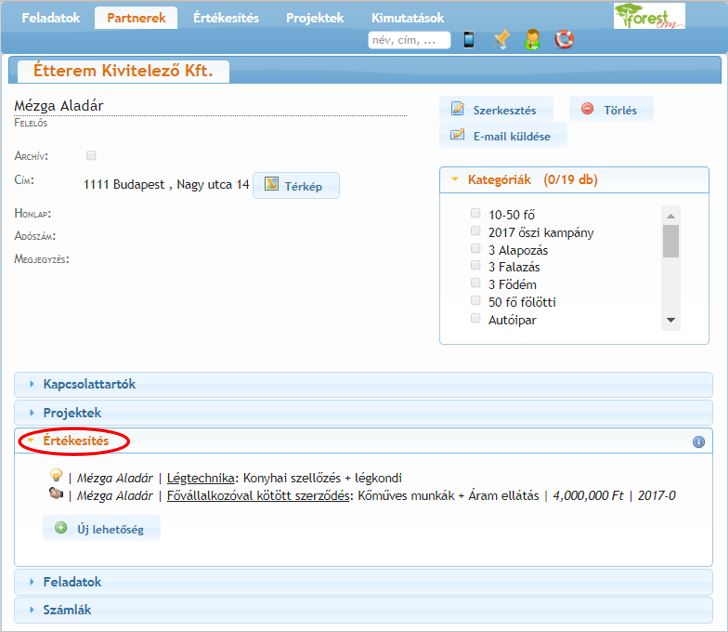 Ahogy az Első lépések bejegyzésben már említettük, a ForestCRM-ben fel kell venni a projektben résztvevő cégeket és azokat az üzleti lehetőségeket, amelyeket a projektben kezelni fogunk. Ezeket CRM funkciónak tekintjük és elvégzésük leírása is ott található.