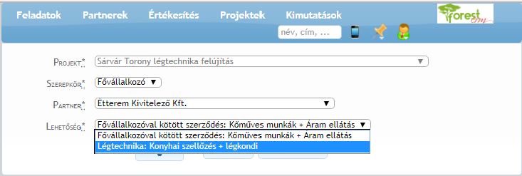 - Szerepkör: válasszuk ki, hogy milyen szerepet tölt be a projektben a kapcsoladnó cég.