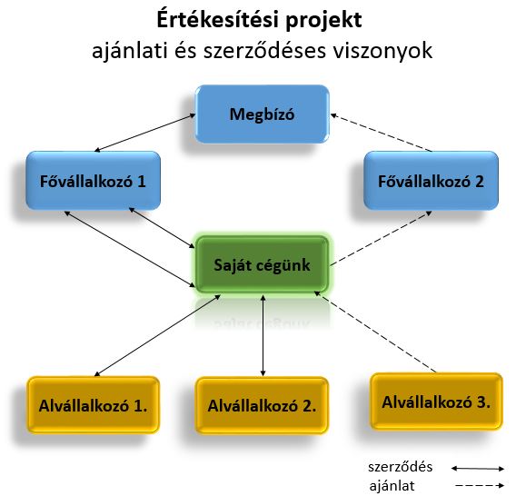 Az értékesítés során a szerződések nem egy cég köré, hanem egy témakör, egy projekt köré csoportosíthatók. A projekt elnyeréséhez számos szerződéselőkészítés menedzselése szükséges párhuzamosan: